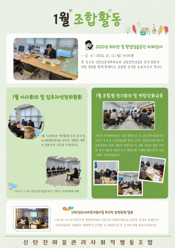 2026년 1월 조합활동소식 페이지 정보 작성자 최고관리자 댓글댓글 0건 조회조회 108회 작성일작성일 26-02-03 14:12 본문 2026년 1월 조합활동소식 공유합니다. 목록 답변 다음글12월 조합활동 소식 26.01.07