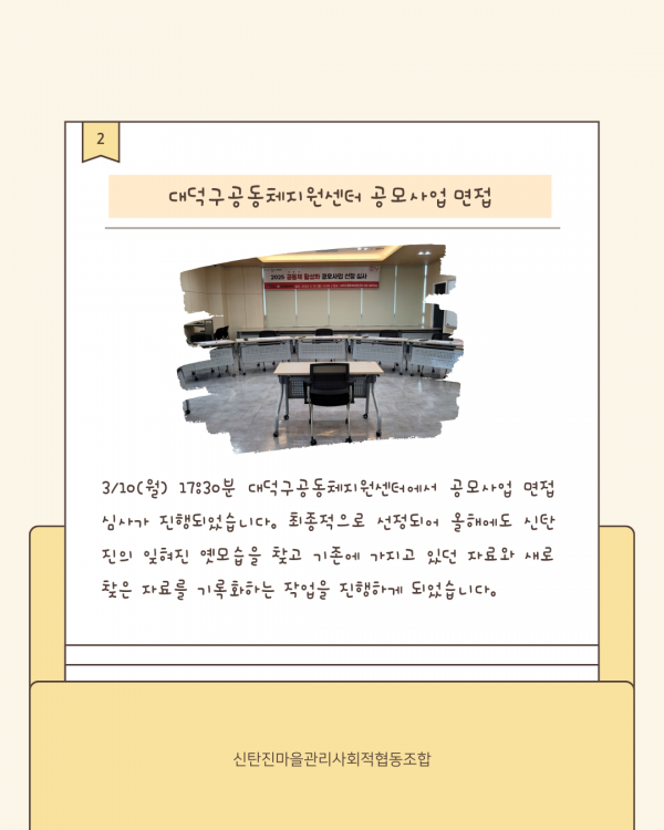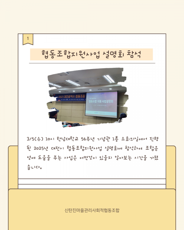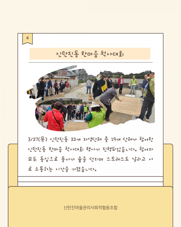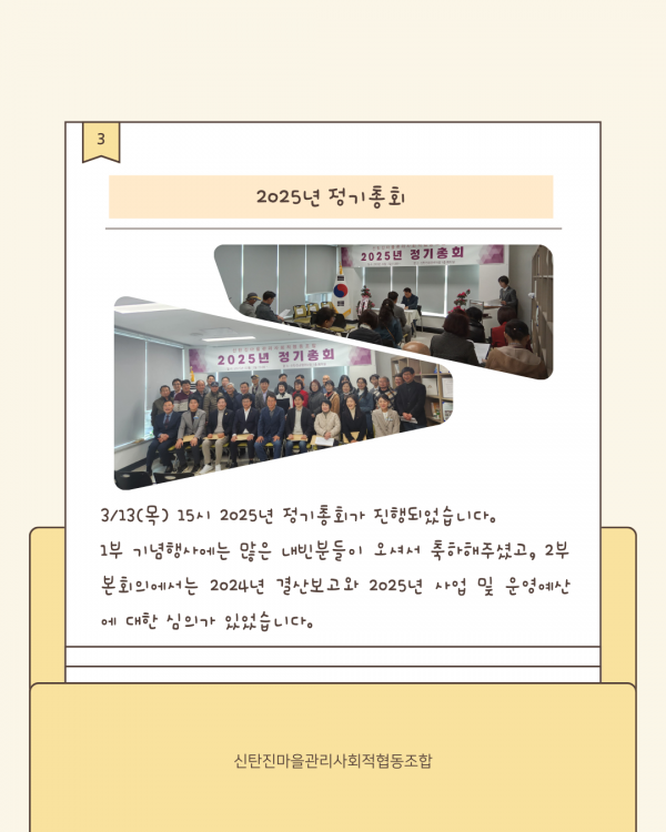 3월 조합활동소식 페이지 정보 작성자 최고관리자 댓글댓글 0건 조회조회 270회 작성일작성일 25-04-10 10:22 본문 3월 조합활동소식입니다. 목록 답변 이전글솟대만들기 참여자 모집안내 25.04.18 다음글2월 조합활동 소식 25.03.10