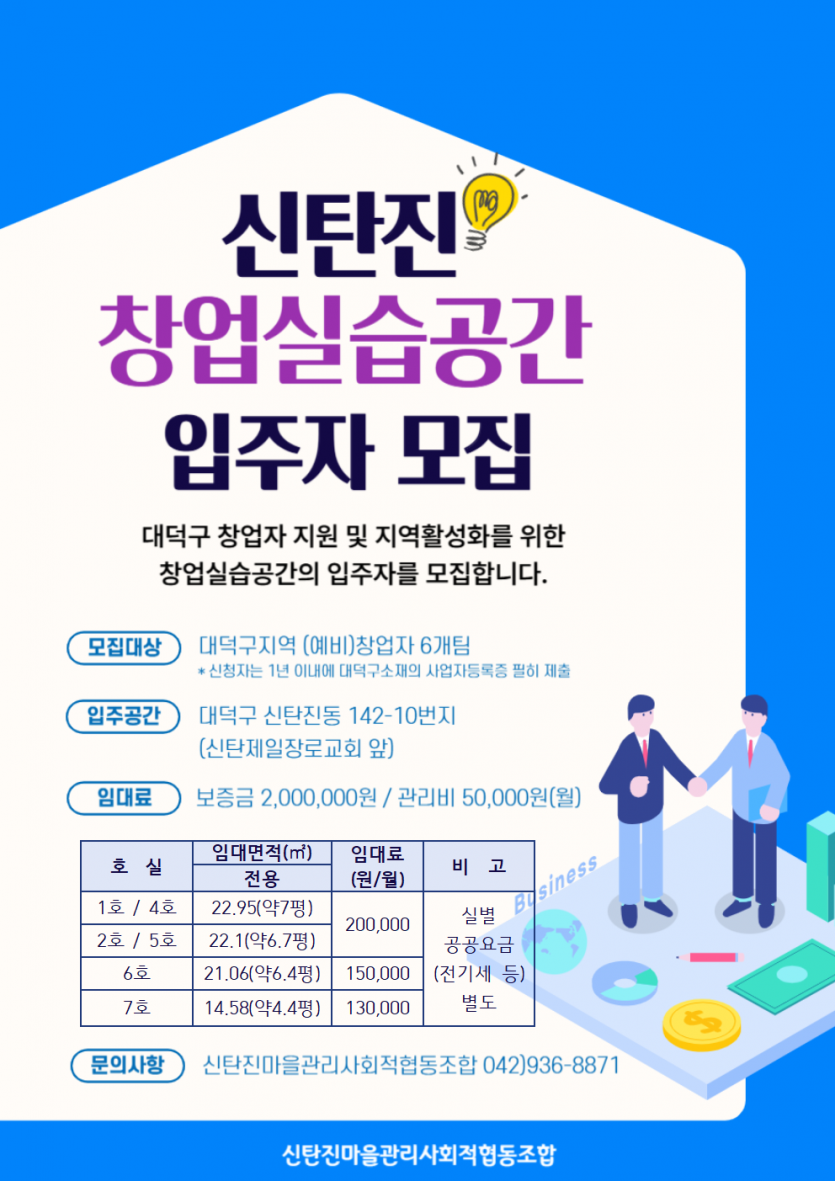 신탄진창업실습공간에서 입주자를 모집하고 있습니다.