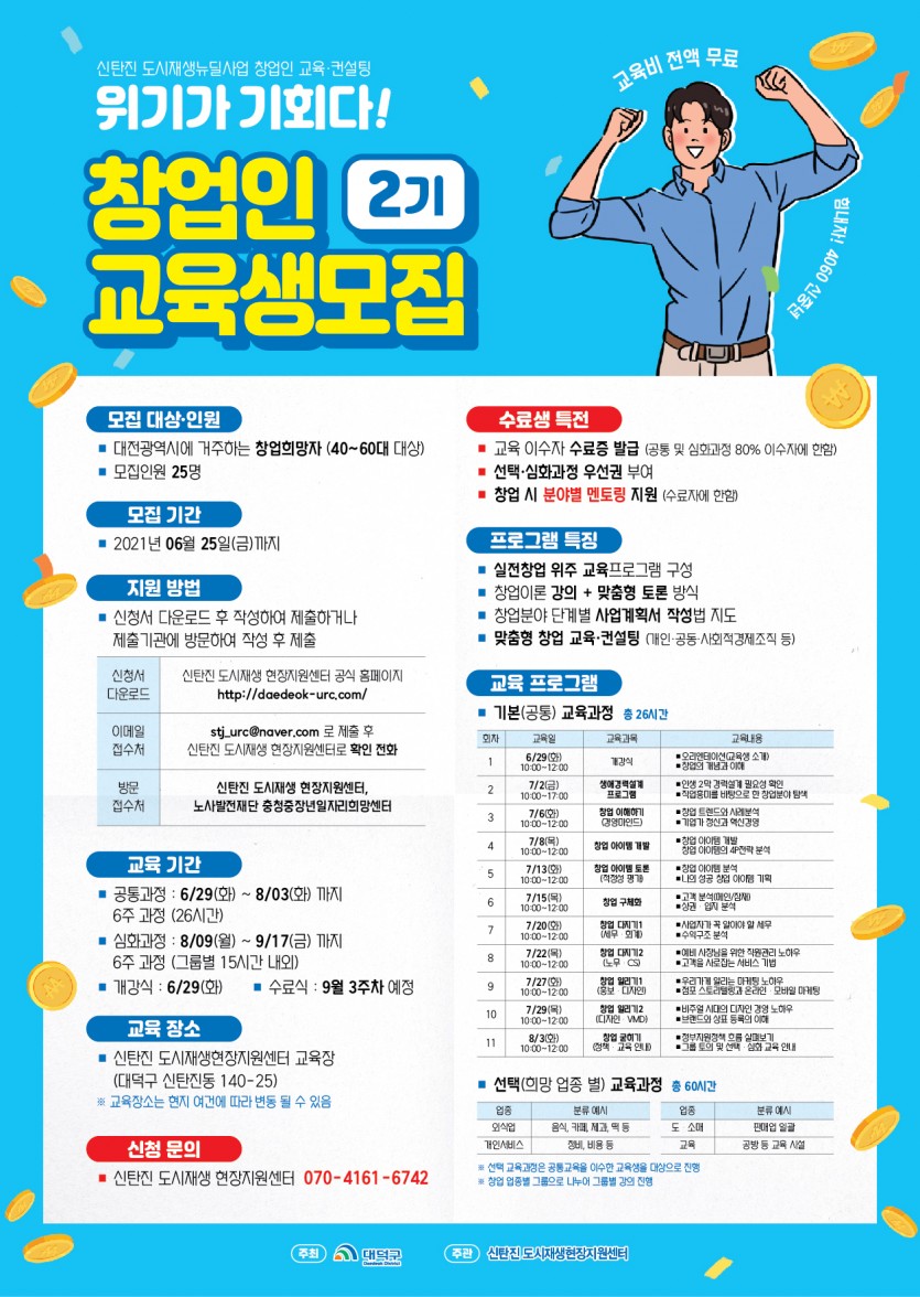 (위기가 기회다!!) 2기 창업인 교육생 모집 페이지 정보 작성자 최고관리자 댓글댓글 0건 조회조회 3,072회 작성일작성일 21-06-03 15:35 본문 첨부파일 신탄진_창업인교육_참가신청서.hwp (32.0K) 42회 다운로드 | DATE : 2021-06-03 15:37:25 목록 이전글2021년 도시재생대학(특화과정) <문화장터 기획자 양성과정> 개강 21.06.07 다음글★★대덕구 도시재생에 관심이 있다면?★★_오정동 도시재생대학 21.04.23