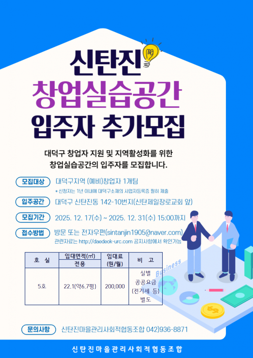 신탄진창업실습공간 입주자 추가모집